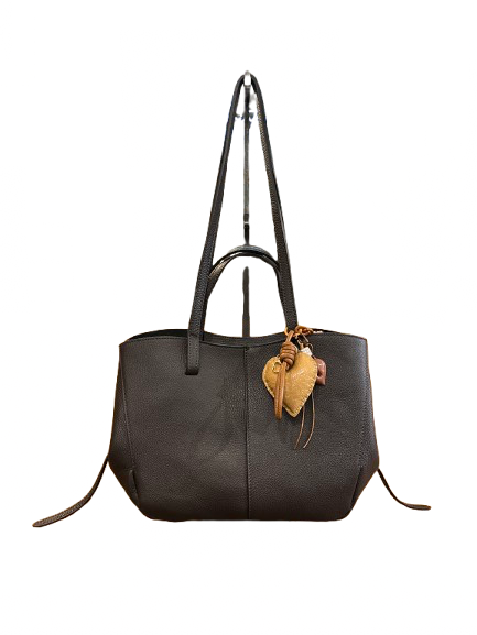 Borsa di pelle, con doppio manico, chiusura con calamita. Vera pelle. Ciondolo venduto separatamente €14,90