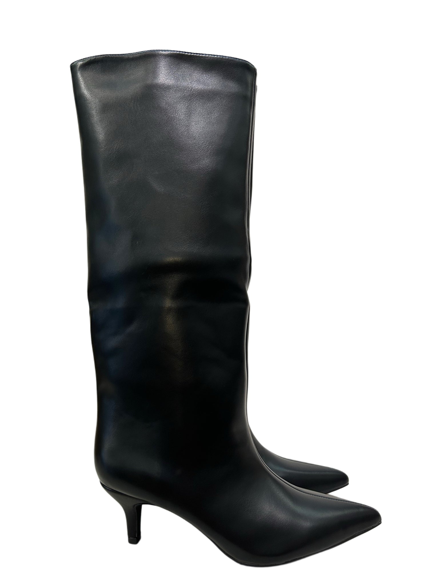 Stivale in similpelle, a punta, Chiusura con zip laterale. Altezza tacco 5 cm.