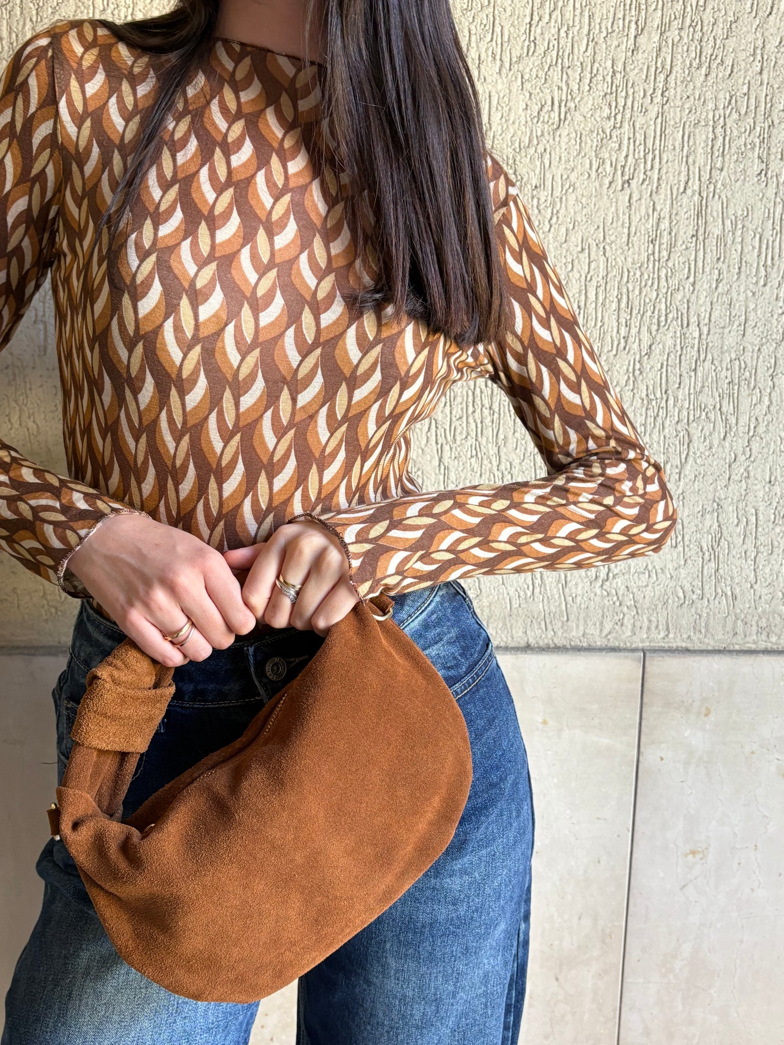 Maglia con scollo tondo, semitrasparente, maniche lunghe.
