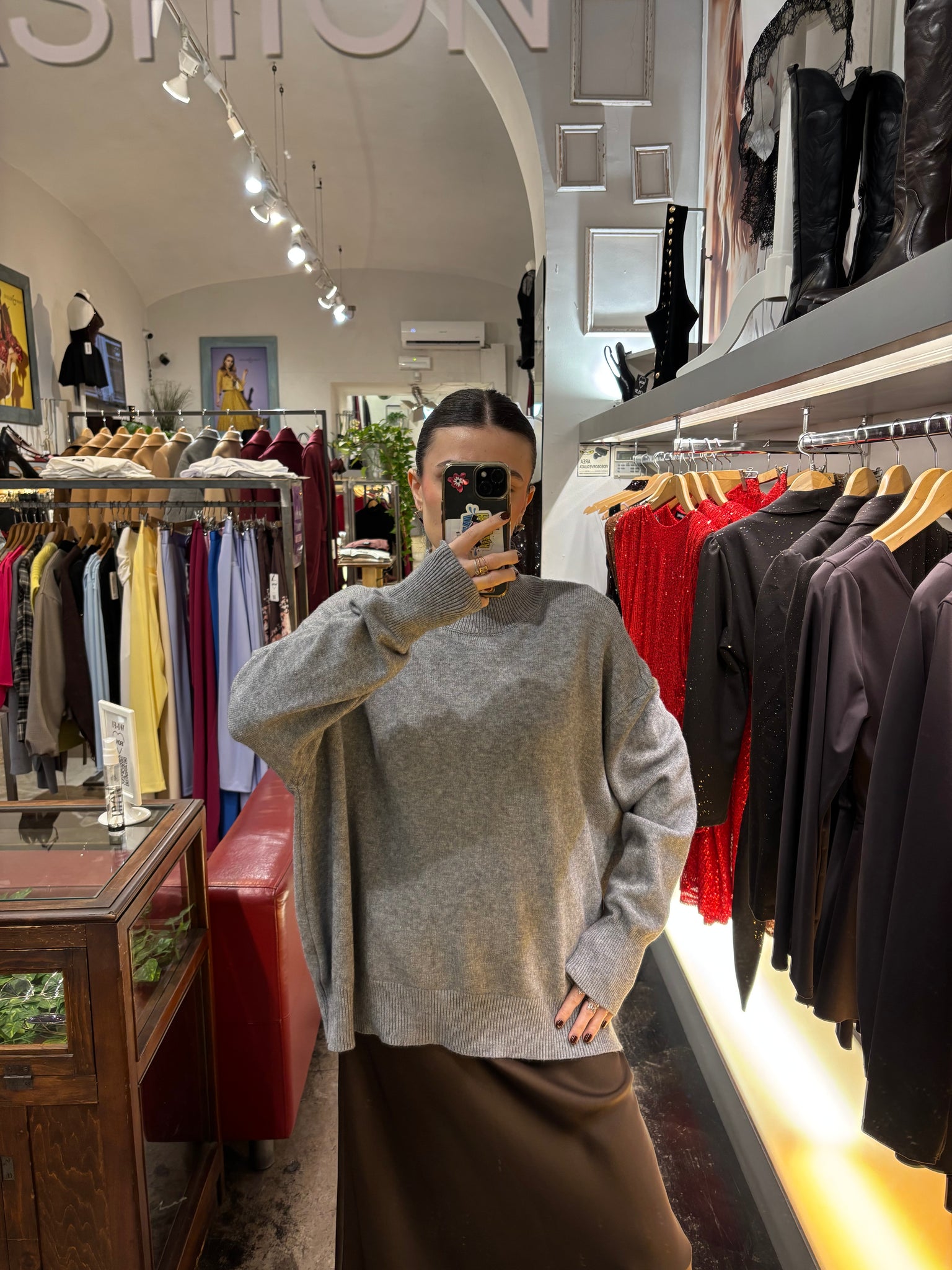 Maglia oversize con collo a lupetto, maniche lunghe.