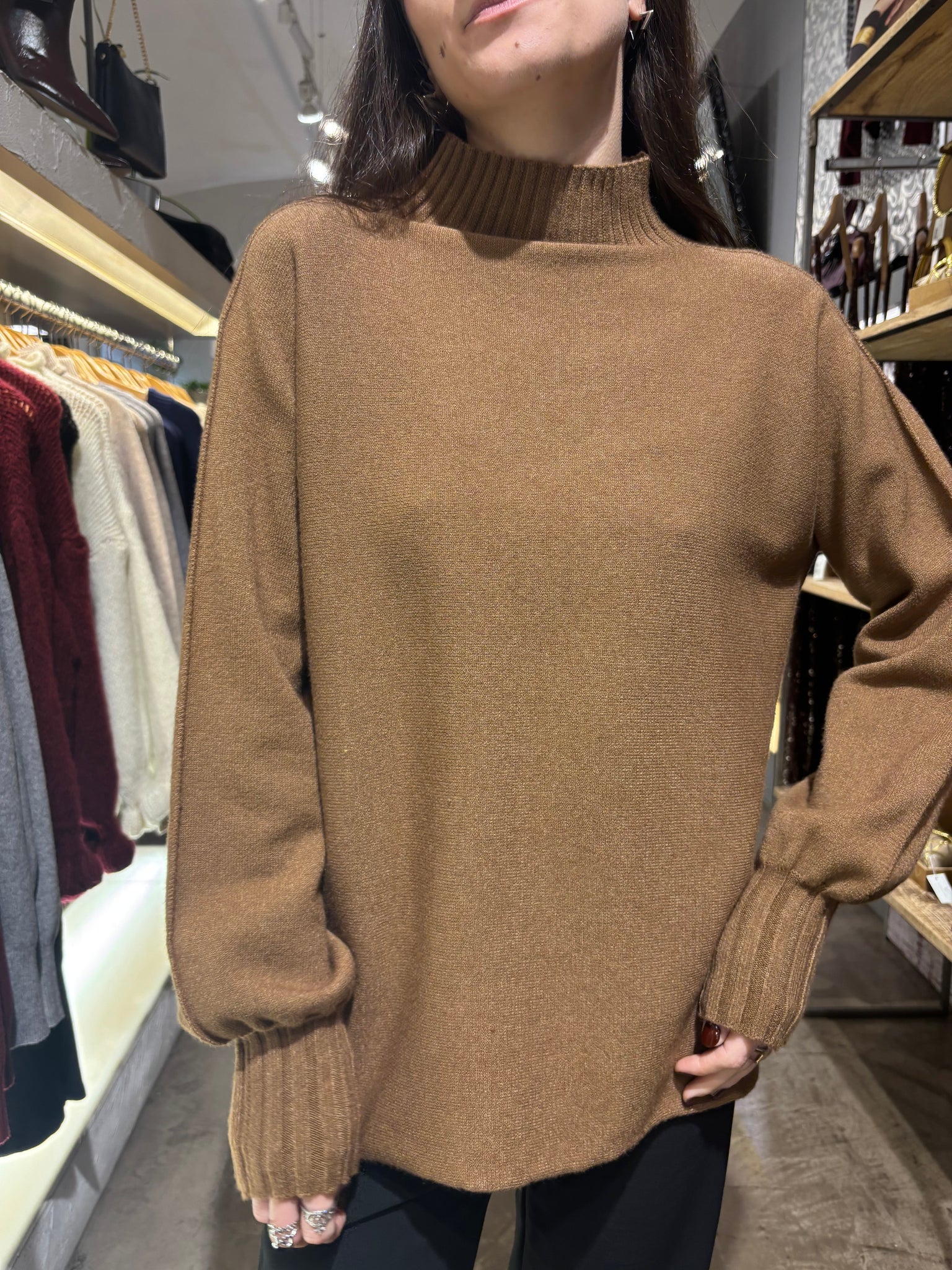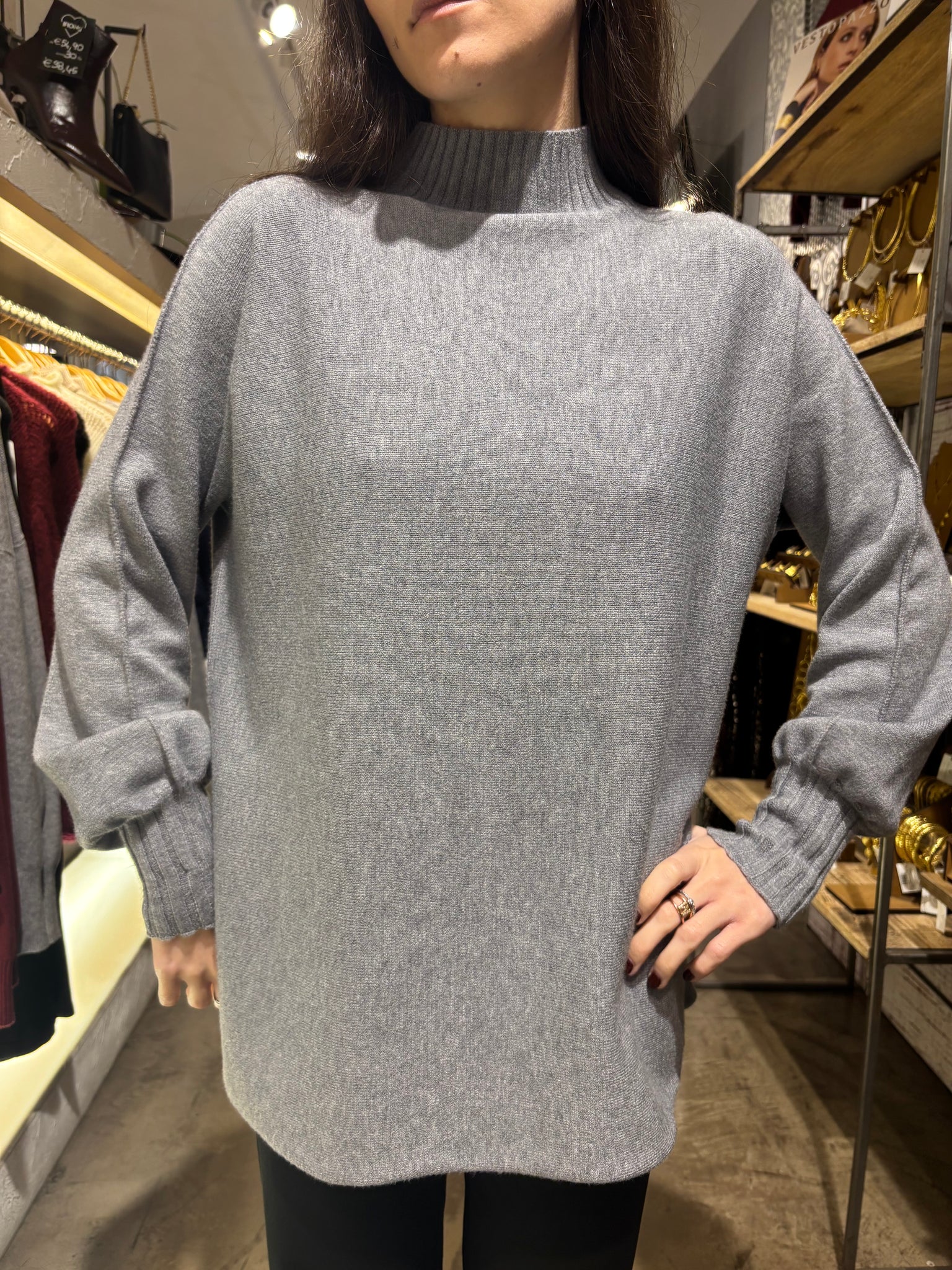 Maglia oversize con collo a lupetto, maniche lunghe con polsini. Composizione