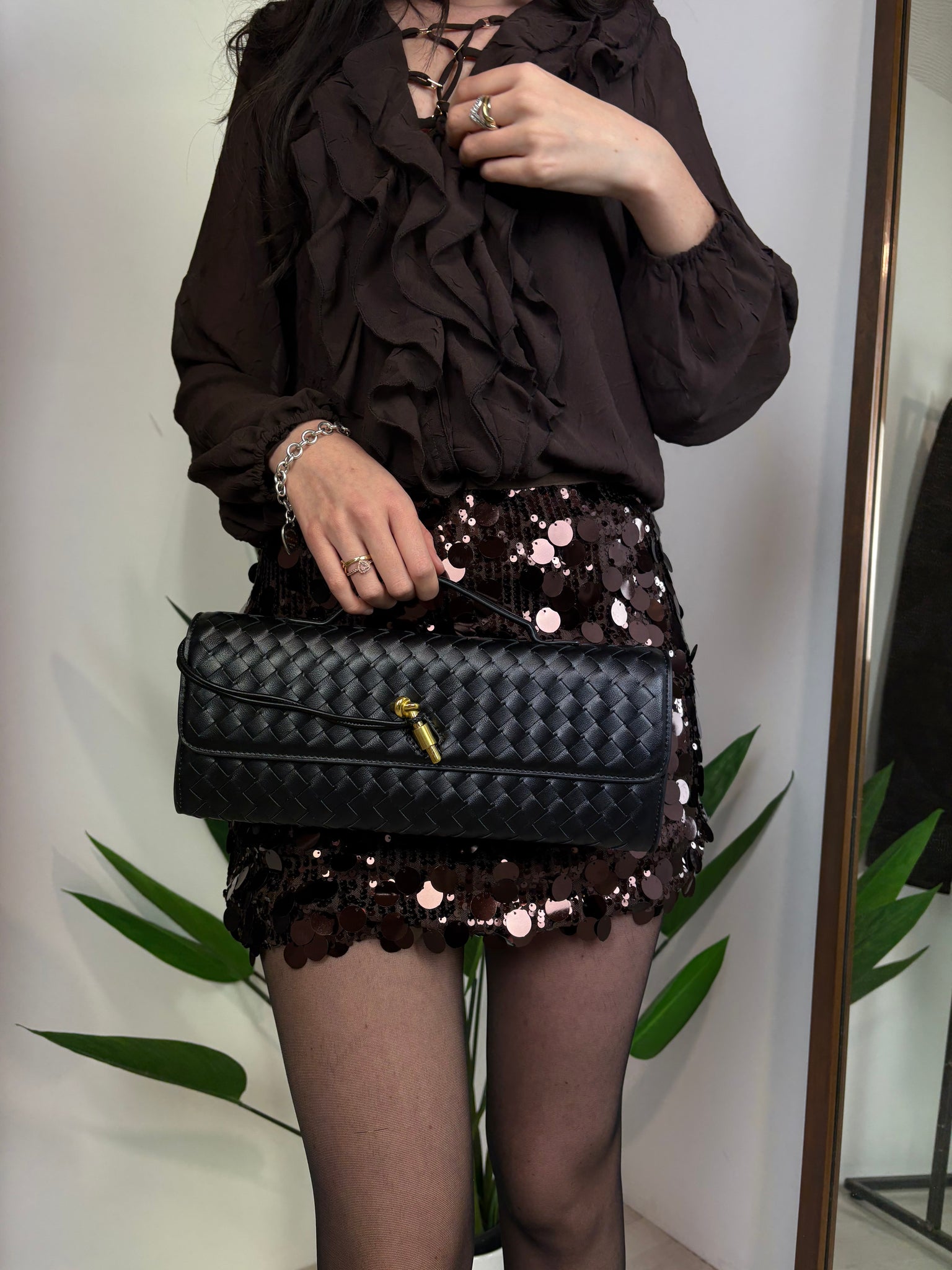 Borsa con manico in pelle intrecciata. Vera pelle.
